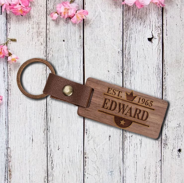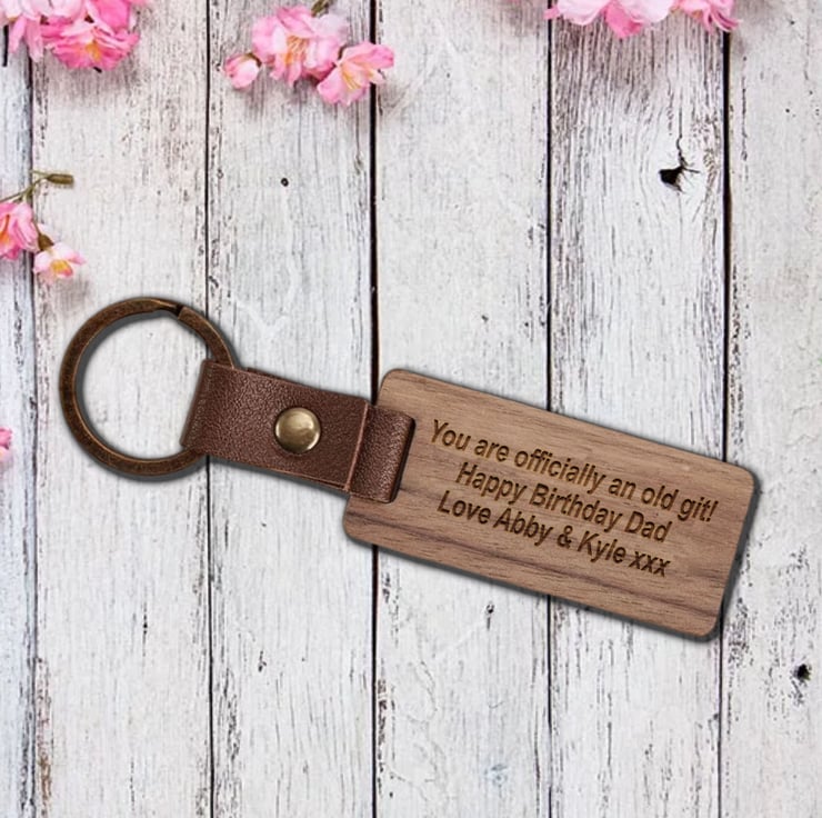 Made from walnut, our 60th Birthday wooden personalised keyrings can have their name engraved on the front and a special message engraved on the back.