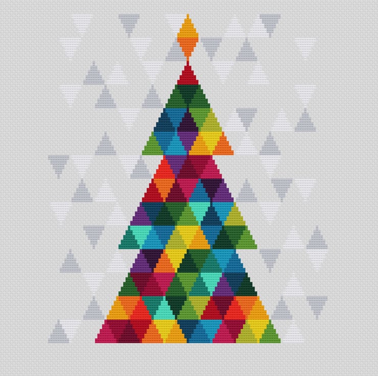 Cross Stitch Geometric Christmas Tree and snowflakes, modern Scandinavian Rainbow Winter Holidays instant download PDF counted chart 171