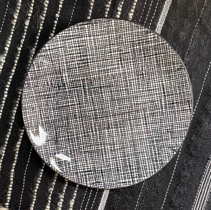 Bold black & white pattern on a vintage 1950s ceramic plate.