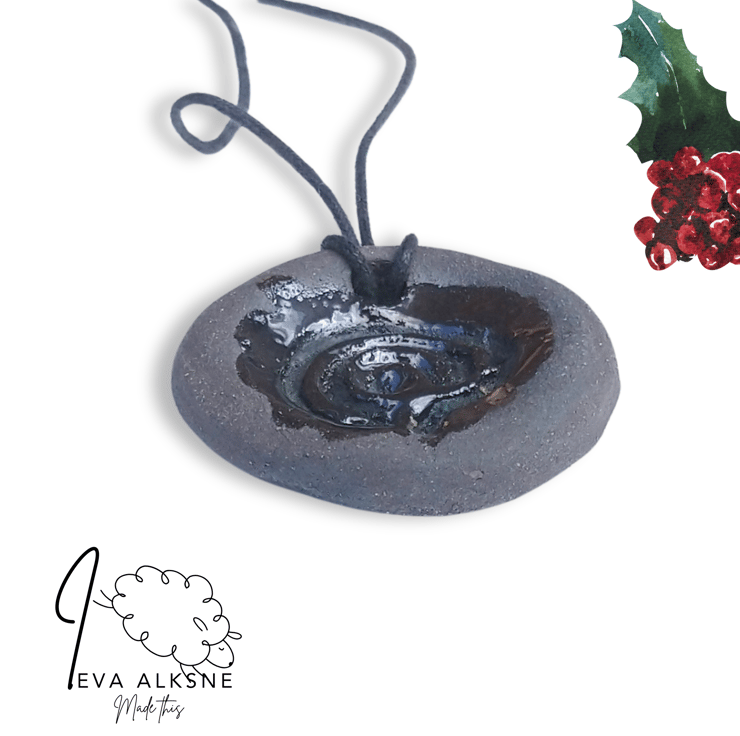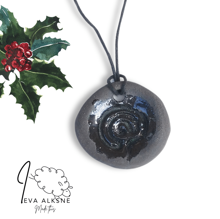 Hand-carved in clay and finished with oxide wash and glaze, this ceramic pendant is a charming piece of jewellery and a portable mini finger labyrinth.