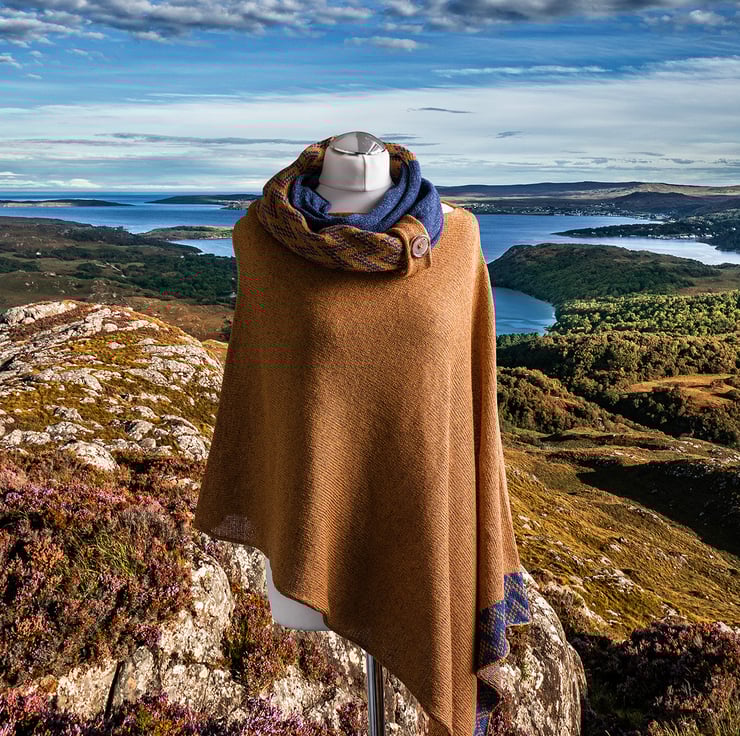 Silk - silk is just luxury in a word and so comfortable to wear, it gives the poncho a lovely drape and alters the texture of the yarn to create a very tactile and soft to the skin poncho. It's also one of the strongest natural fibres and lightweight, breathable and hypoallergenic.