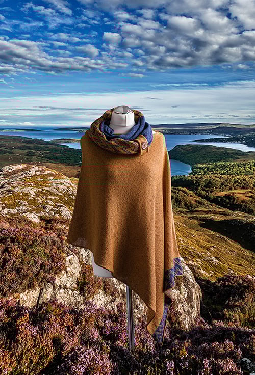 Silk - silk is just luxury in a word and so comfortable to wear, it gives the poncho a lovely drape and alters the texture of the yarn to create a very tactile and soft to the skin poncho. It's also one of the strongest natural fibres and lightweight, breathable and hypoallergenic.