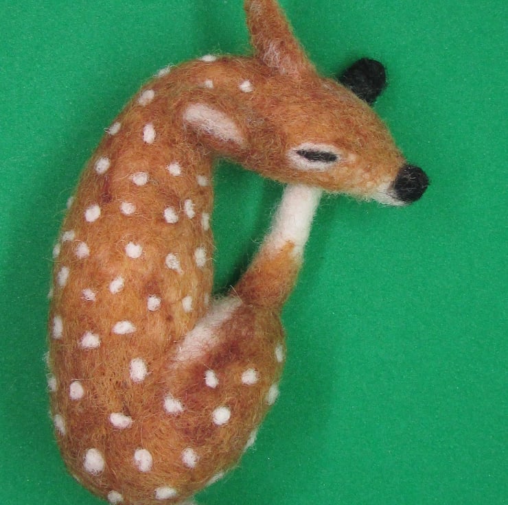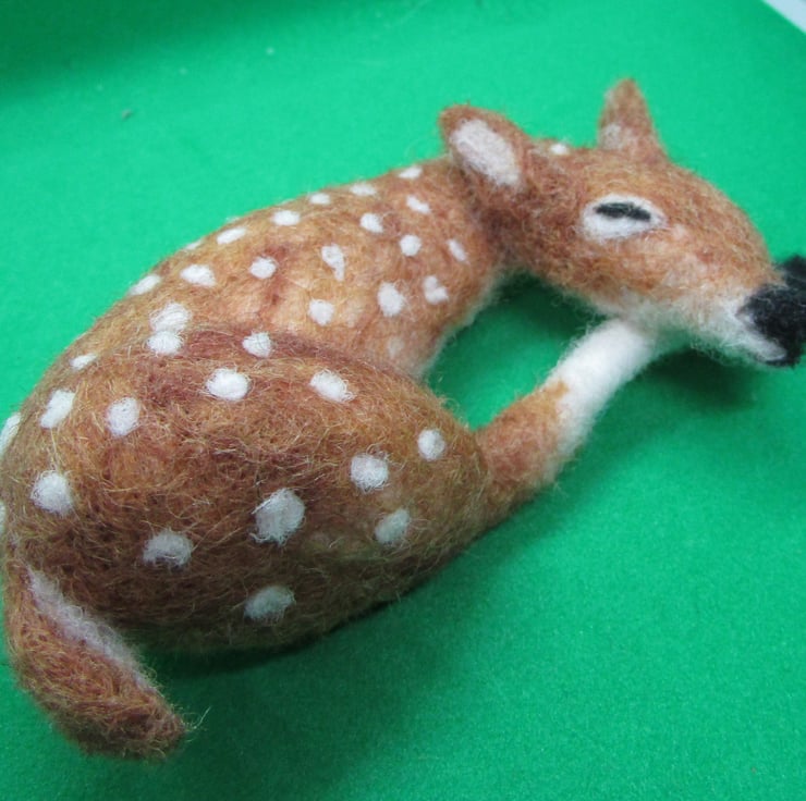 Needle-Felted  Deer Fawn  Sleeping Handmade
