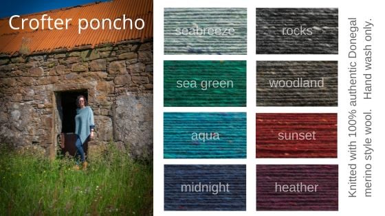 Crofter Poncho is a cozy knit perfect for year-round wear. Made from authentic 100% Merino Irish Donegal wool, it features a slight slub and colorful flecks that add character. This soft knit feels wonderful against the skin and is finished with one of my handcrafted resin seashore buttons. Embrace comfort and style with this unique piece.