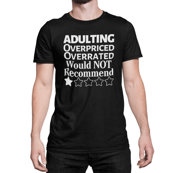 Funny Unisex Adulting T Shirt Overpriced, Overrated Would Not recommend