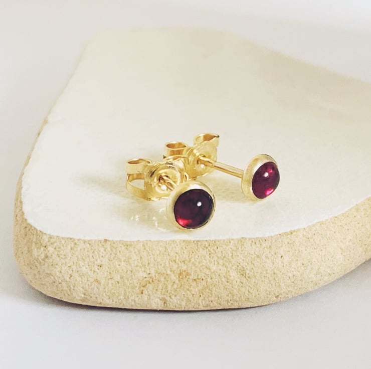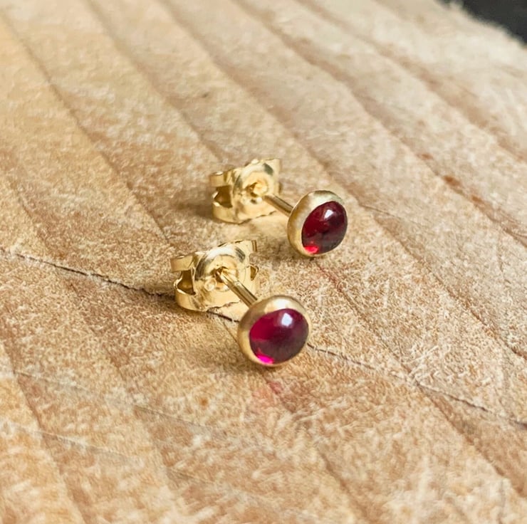 Recycled Solid 9 carat Gold Garnet Stud Earrings