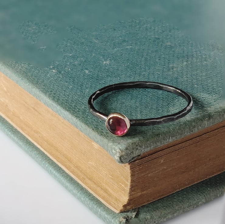 Skinny gemstone ring has been hammered textured, I have applied a dark patina on the ring.