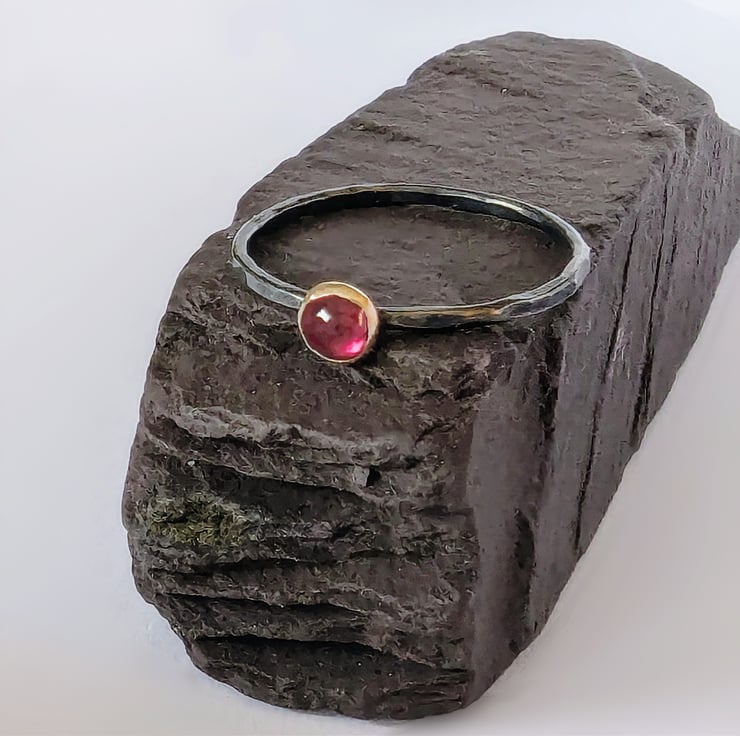 Recycled Sterling Silver and Gold Patina Garnet Textured Skinny Ring