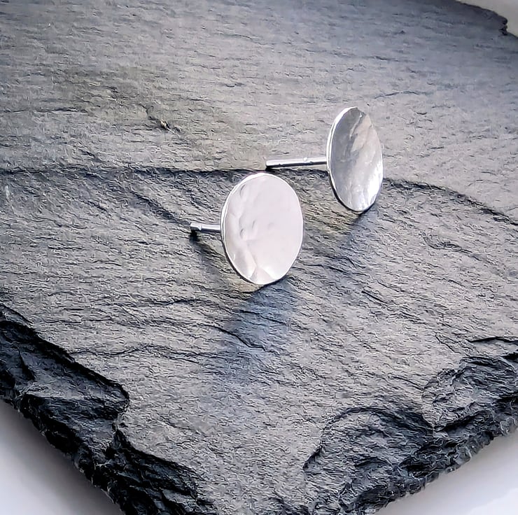 These handmade silver stud earrings feature a unique hammered texture design. Crafted with care, they showcase intricate details and a stunning texture that catches the light beautifully. These studs are a timeless addition to any jewellery collection, offering a touch of elegance and sophistication to any outfit. Their simplicity and versatility make them suitable for both casual and formal occasions. Made in sterling silver adds a touch of classic charm, making these earrings a perfect choice for those who appreciate artisan craft and inderstated beauty.