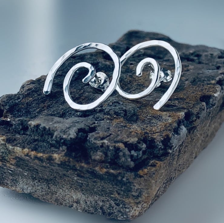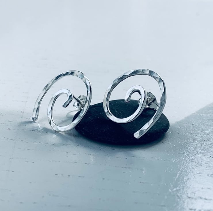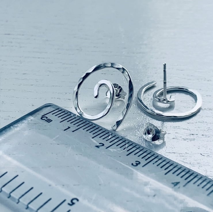 Silver, silver stud earrings. silver studs, spiral silver stud earrings