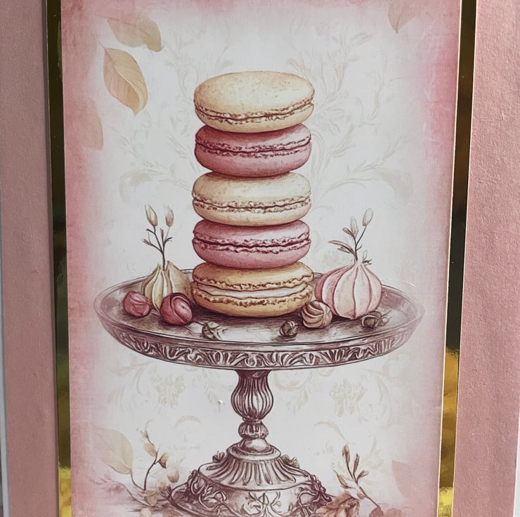Pink backing paper mounted onto a white card, gold mirri card and a pretty vintage peach floral topper design. Plain white paper insert for your own message. This card is part of my fixed price selection. Ideal to buy multiples to add to a box for any occasion. Handmade and better than mass produced shop bought.