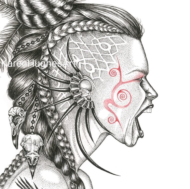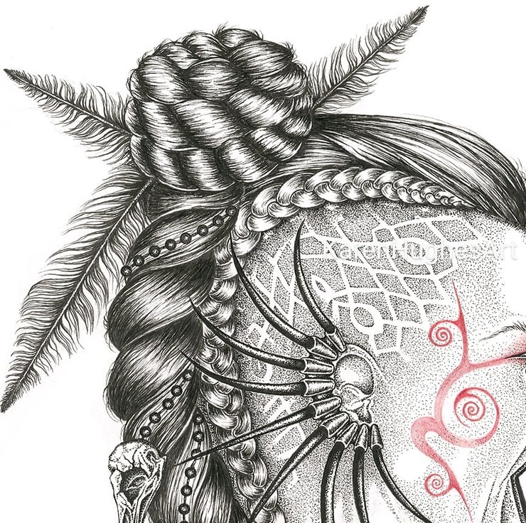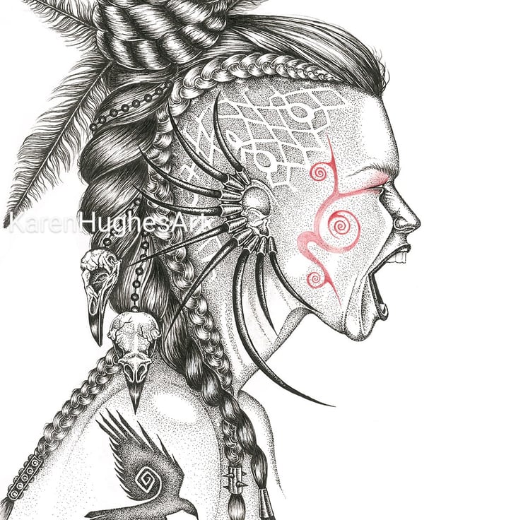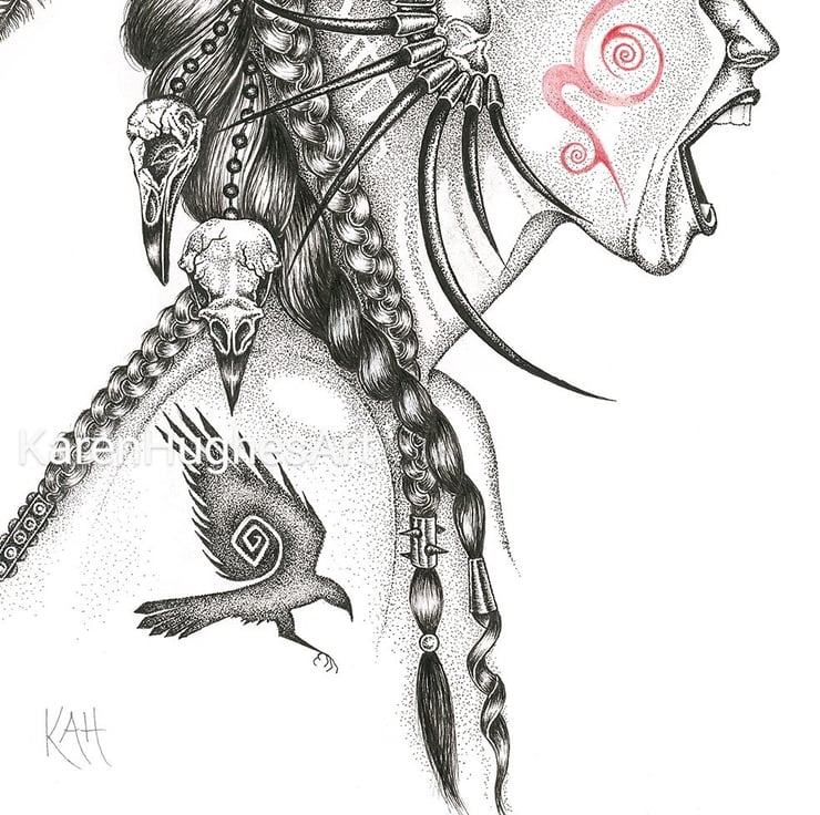 A black, white and red fine art print of my original pen drawing, The Morrigan. Professionally printed on matt acid-free archival Hahnemuhle paper.