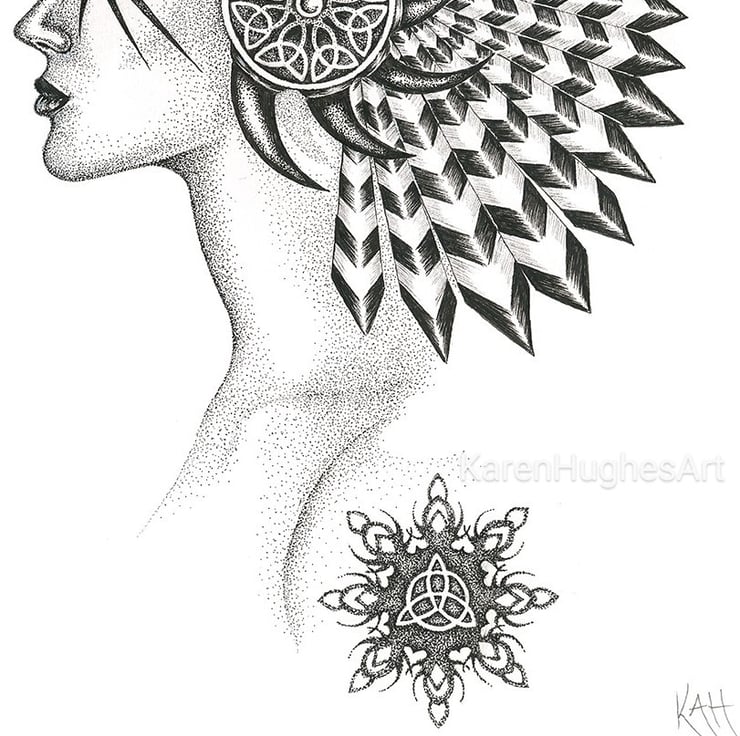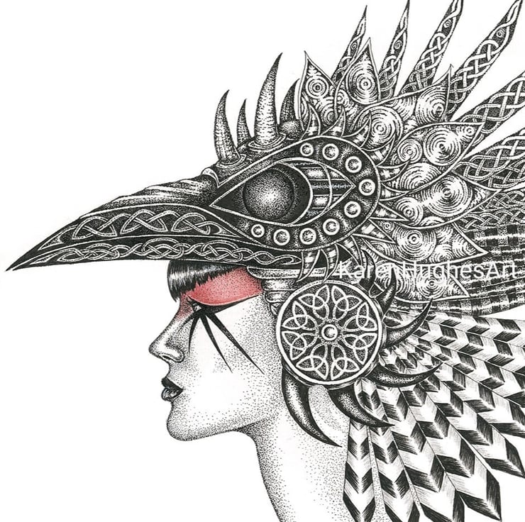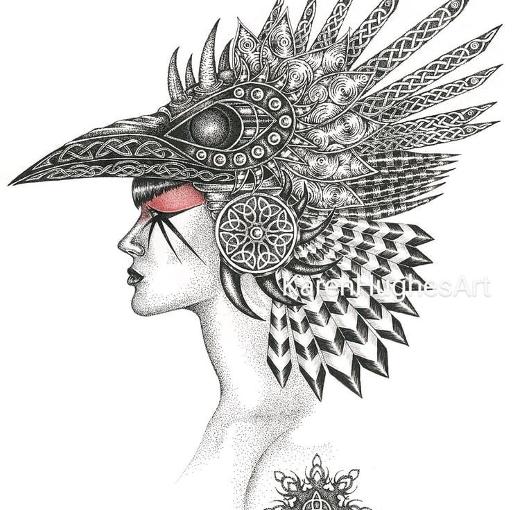 Battle Crow, Badb Catha, one of the shapeshifting aspects of warrior goddess, The Morrigan from Irish legend. Associated with battle, destiny, a fearsome shriek, mists and magic.