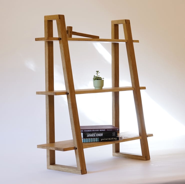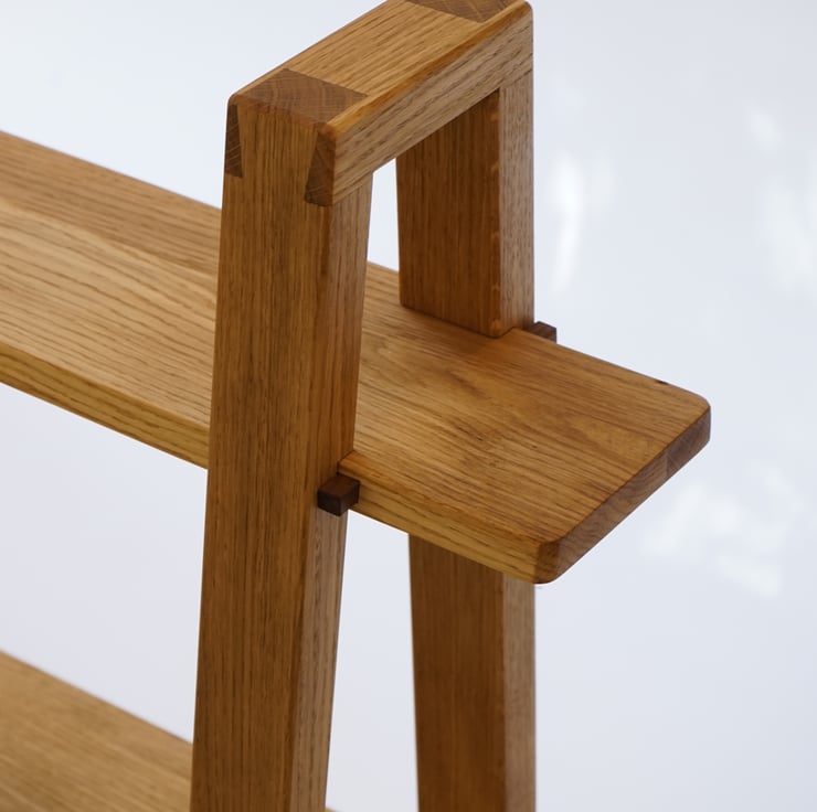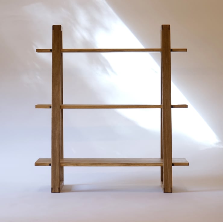 Our signature 'Loop' shelves are made by hand with 100% solid European Oak. The shelves are perfect for wall mounting using flush mounting brackets, or can sit on the floor, or on top of other furniture. These shelves feature hand cut dovetails and are fitted together using wooden wedges. The loop design allows more light to flow through the space, making them a great choice for displaying house plants. These shelves are made to order from scratch and can be made to any dimensions you require, or with any number of shelves, please get in contact for an accurate quote.