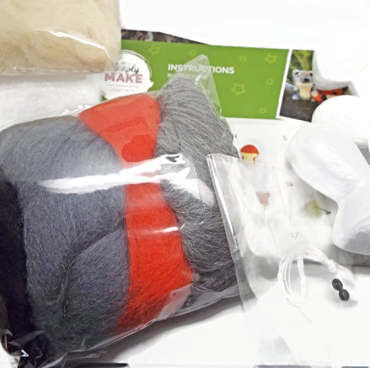 Kit Contents: Polystyrene Mushrooms, Felting Wool, Felting Needles, Thread, Silver Chenille Stem & Instructions