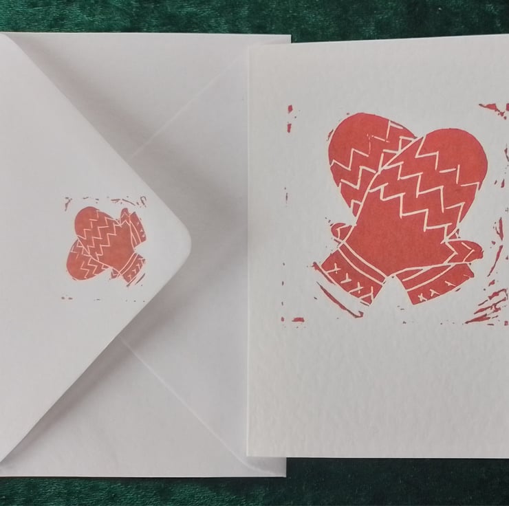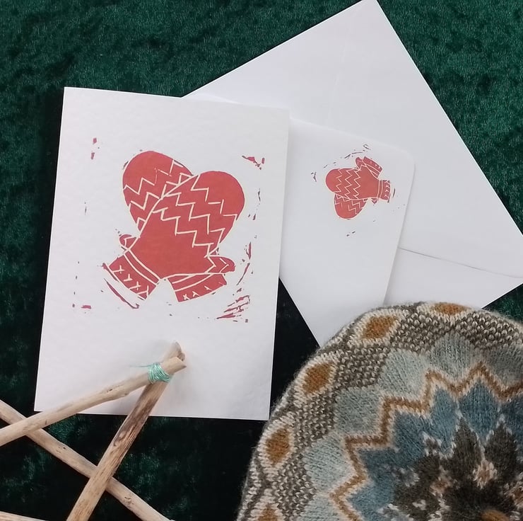 I love colourful knitwear so I had to make a lino print of some cosy mittens.