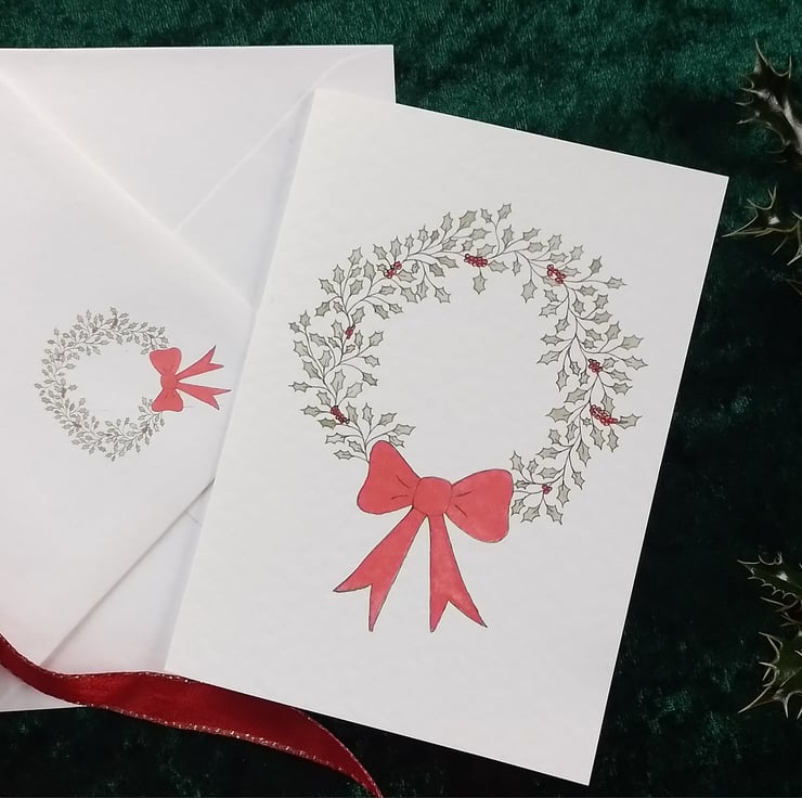 Drawing and painting leaves is one of my favourite things to do so it was inevitable that I would create a Christmas wreath.