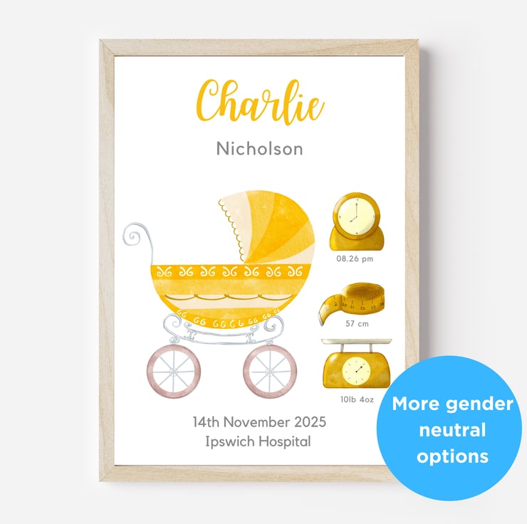 Looking for a special keepsake to mark the birth of your little one or a loved one's baby? This beautiful print will be a treasured possession for many years to come, evoking many happy memories of this wonderful special collection. Available in five colours, including pink and blue for traditionalists as well as three gender neutral options, this print will complement a range of colour schemes. The perfect finishing touch for the child's nursery or playroom.