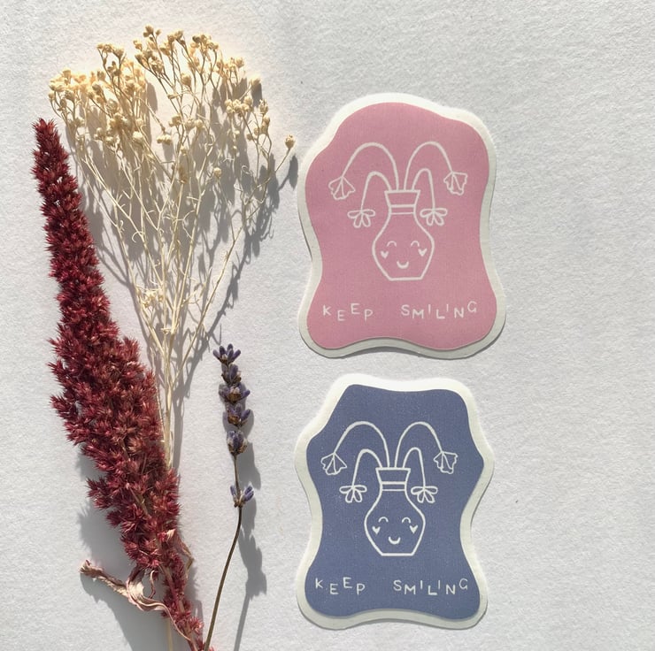 A pack of two stickers, each transformed from original lino print to portable art you can slap on anything! All printed on waterproof PVC-free vinyl.