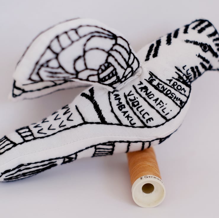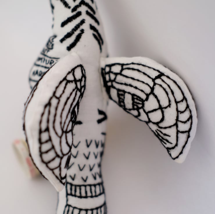 Please note: Thread colours may vary slightly from the image, and the birds were suspended from Manchester Cathedral's ceiling for an event with Manchester Aid to Kosovo in 2019, so most birds have 2 small holes on the back where the thread was attached.