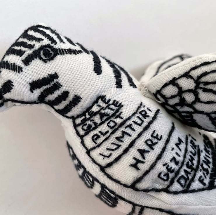 A unique hand embroidered 'Bird of Peace' created by women refugees of war now returned to their home town of Podujëve, Kosovo.