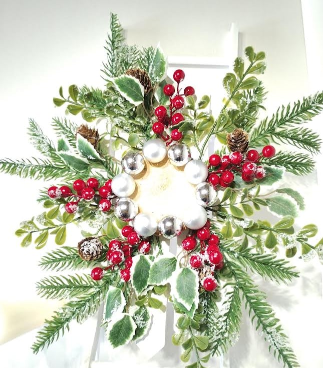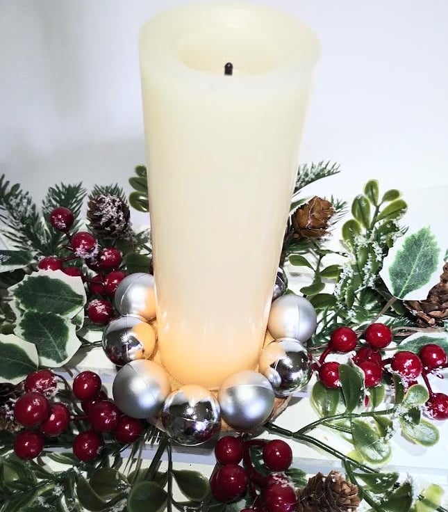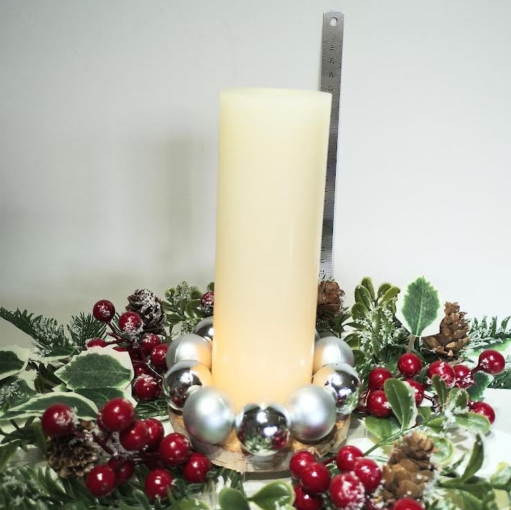 When I came across this sleigh I just had to make a Christmas centre piece with lots of festive foliage and baubles. In my mind I could see it being finished off with a candle and had this slim waxed a LED in my stash. Having a big centre piece sitting on the dining table before it is set up for the festive meal will have family and friends admiring the additional your Christmas ornament collection.