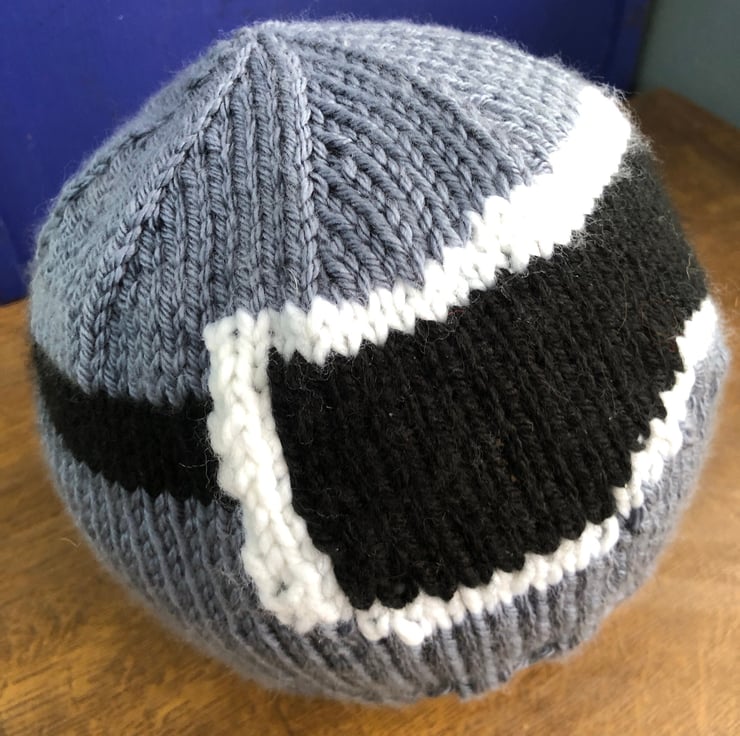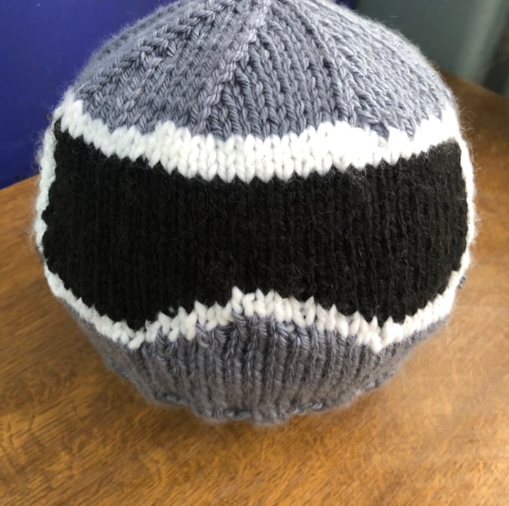 Hand knitted in machine washable acrylic yarn.