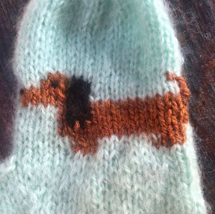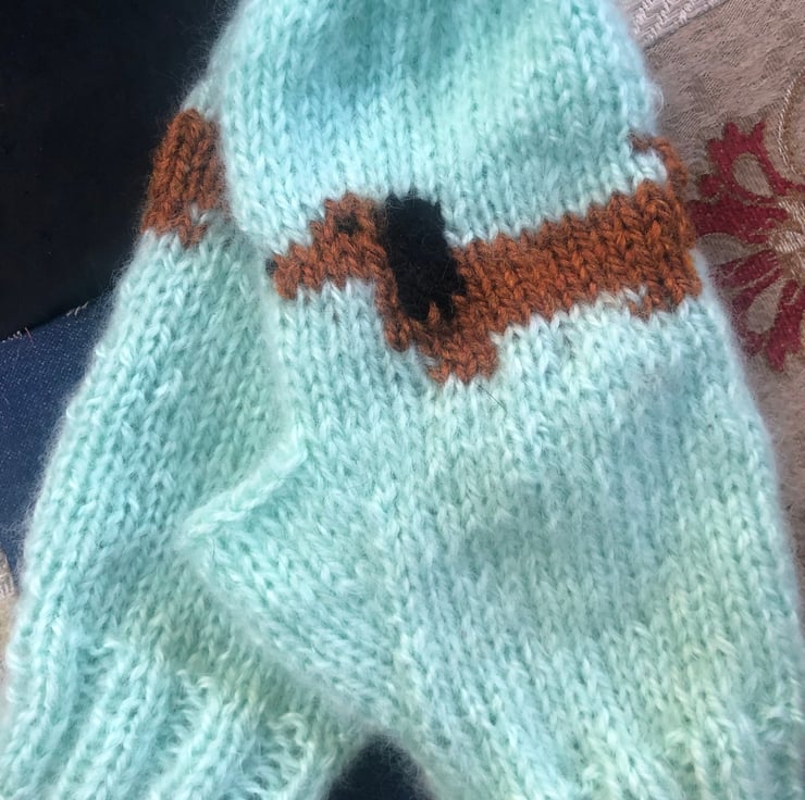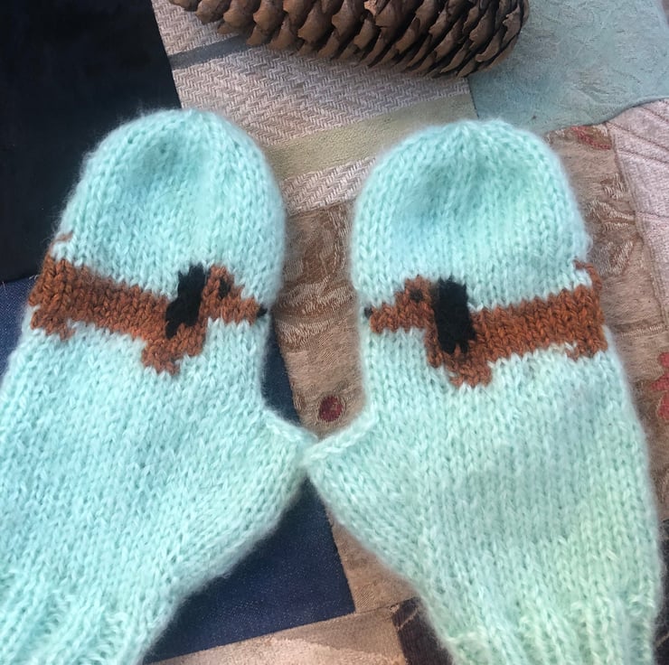 Light green slightly fluffy machine washable yarn makes the mittens very cosy .