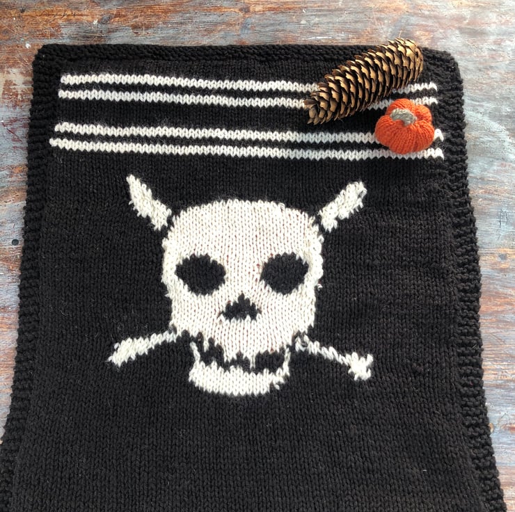 Hand knitted Skull Baby blanket Black and cream, alternative, Goth, baby shower