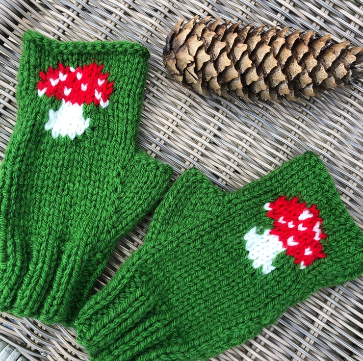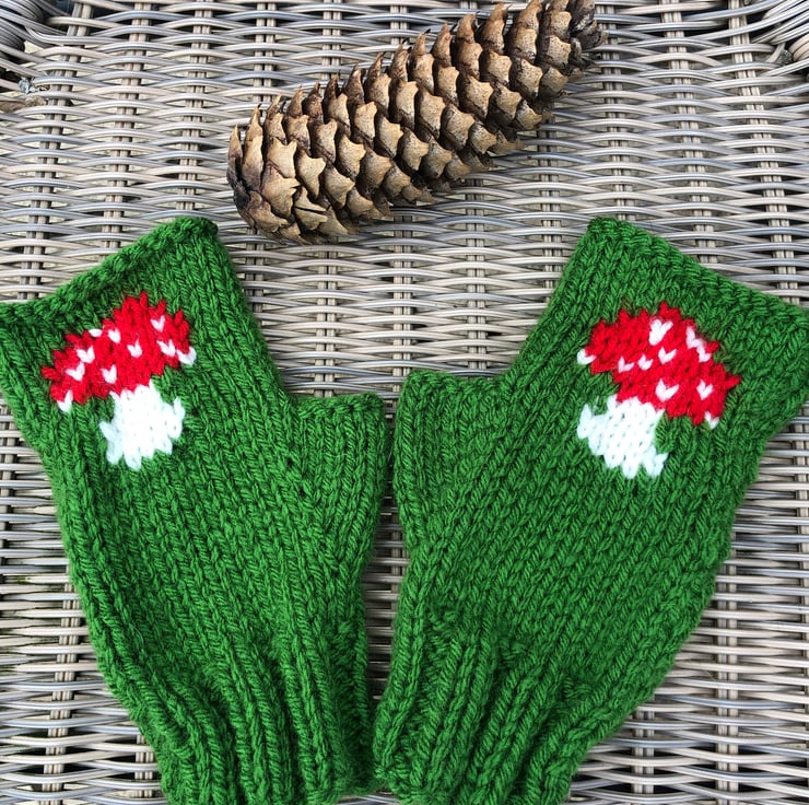 Hand knitted in acrylic machine washable aran yarn so warmer than your average mitten.
