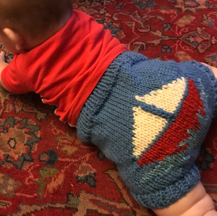 Sail Boat wool nappy soaker,hand knitted, XL diaper cover,boys nautical shorties