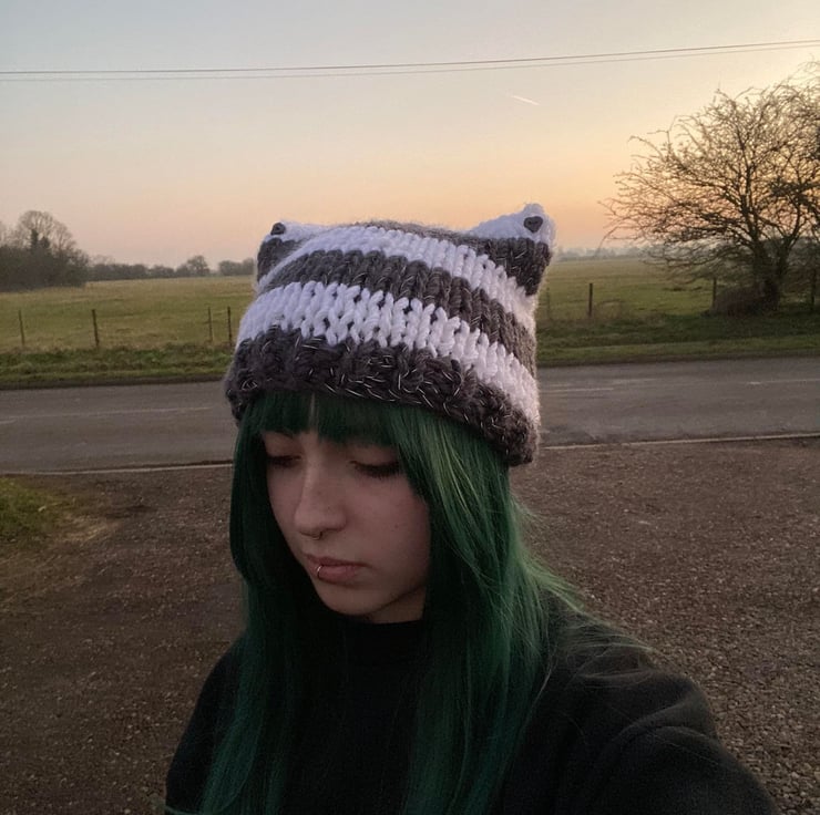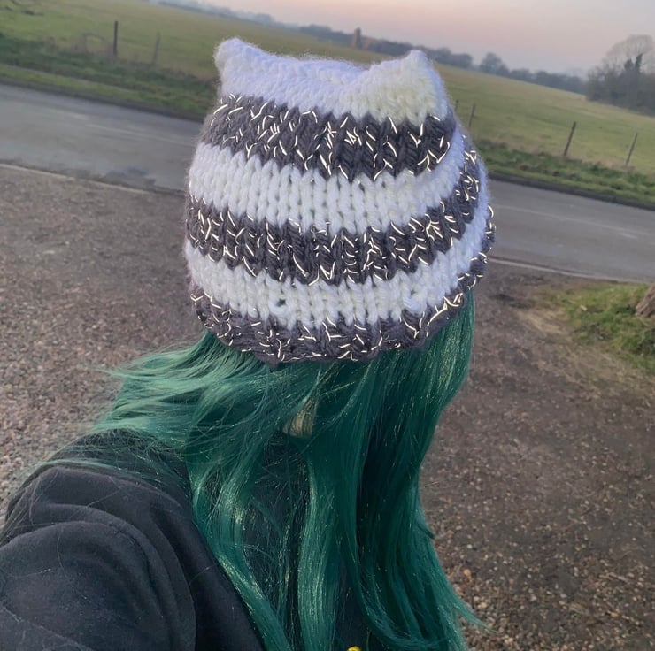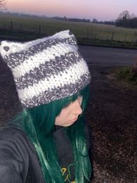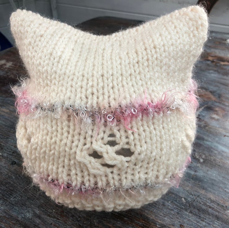Cat Ears winter Hat Hand Knitted soft acrylic wool raising money for our cat res