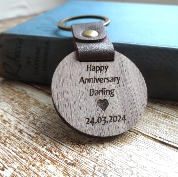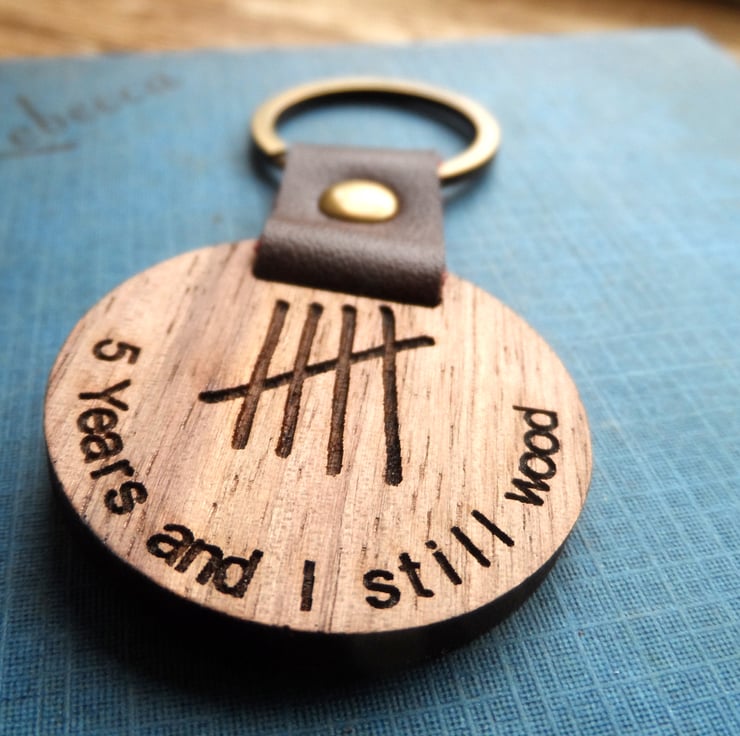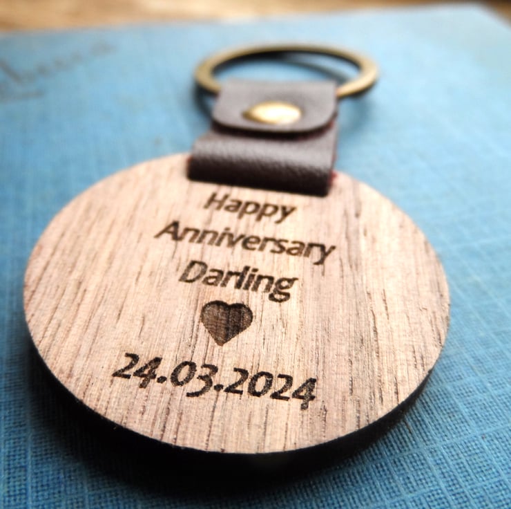5th Wedding Anniversary Gift Engraved Wooden Keyring for Husband Wife Him Her