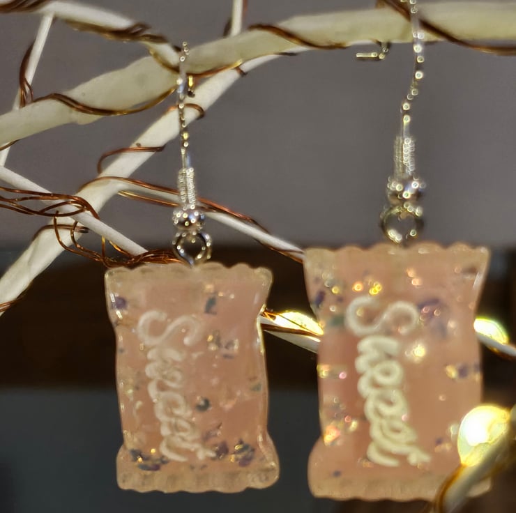 Who doesn't like sweets? Especially pale pink and sparkly ones!! These pretty sweet shaped earrings with fish hook backs are the perfect gift for any sweet lover!sweet,sweet tooth,retro,earrings,jewellery,gift,present,Christmas,birthday,