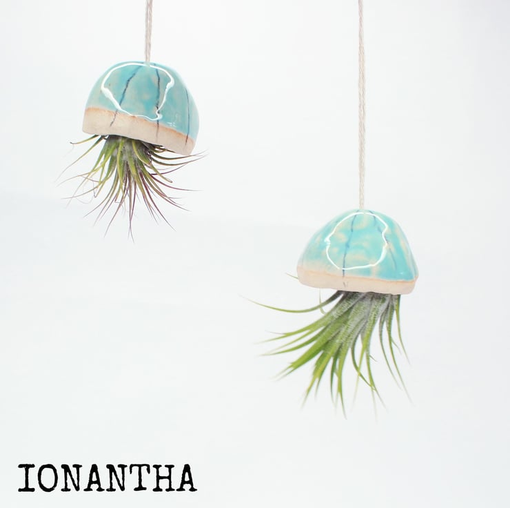 The air plants make perfect home decorations, ideal for your bathroom or any room with the right conditions. They just need a minimal amount of tender loving care, to stay vibrant and healthy. Each shell is hand-pinched before being bisque-fired, then individually illustrated and dipped in our own unique turquoise glaze. They are then fired and carefully hand-strung, creating these wonderful little hanging pots for our gorgeous air plants.