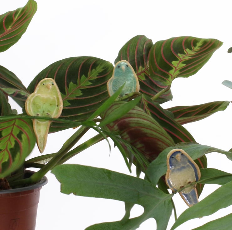 Handmade in Devon with British clay and recycled glass, each creature is completely unique. Simply wrap the fine wire around a sturdy stem on a houseplant or place in a plant pot, terrarium or any object you want your little friend to perch on!