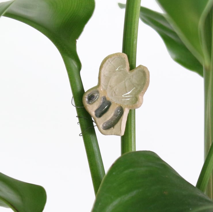 Handmade in Devon with British clay and recycled glass, each creature is completely unique. Simply wrap the fine wire around a sturdy stem on a houseplant or place in a plant pot, terrarium or any object you want your little friend to perch on!