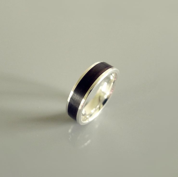 Handmade Wood Ring. Ebony Bentwood With Sterling Silver.