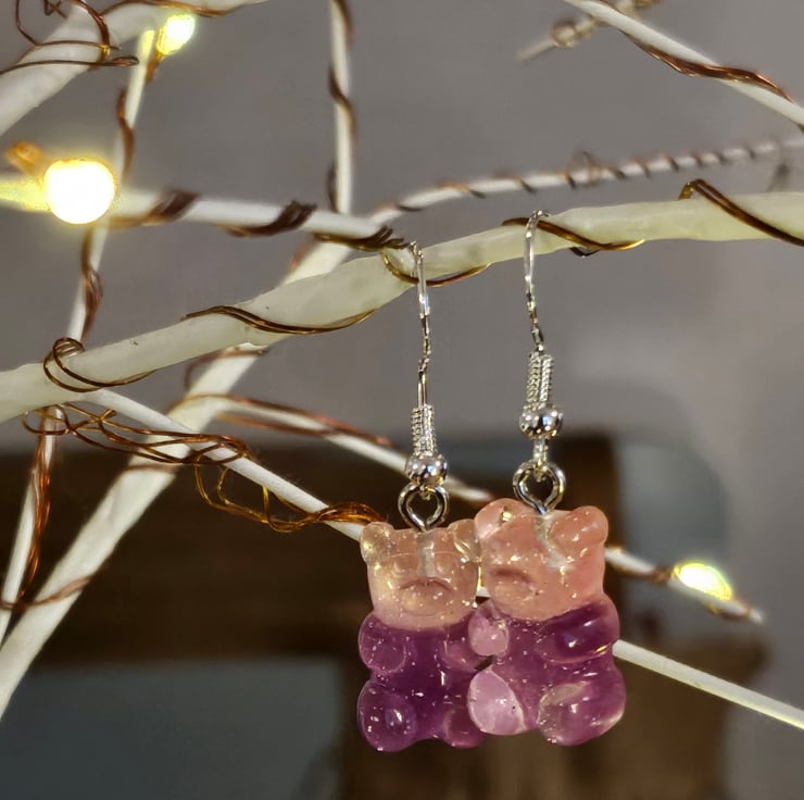 Sweets without the calories! These are cute little non-edible Gummy Bear shaped earrings with a fish hook back.