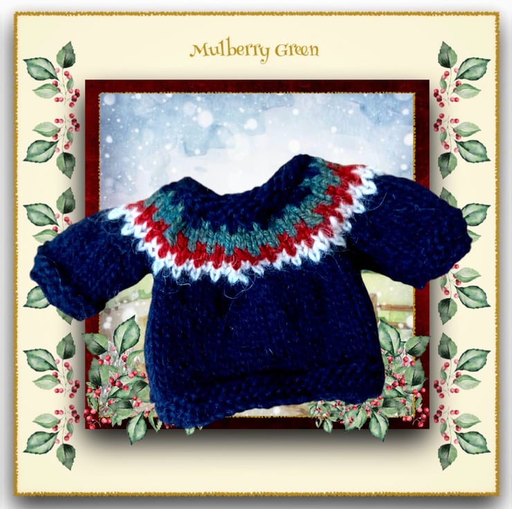 A lovely yoked jumper in pure Icelandic wool, to fit the Mulberry Green characters. The jumper is hand knitted and fastens with a little popper at the back.