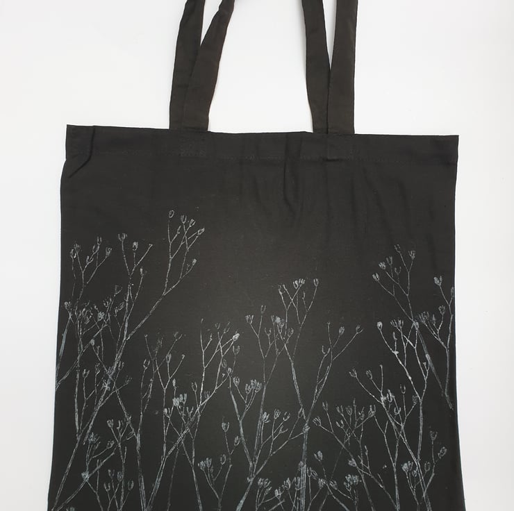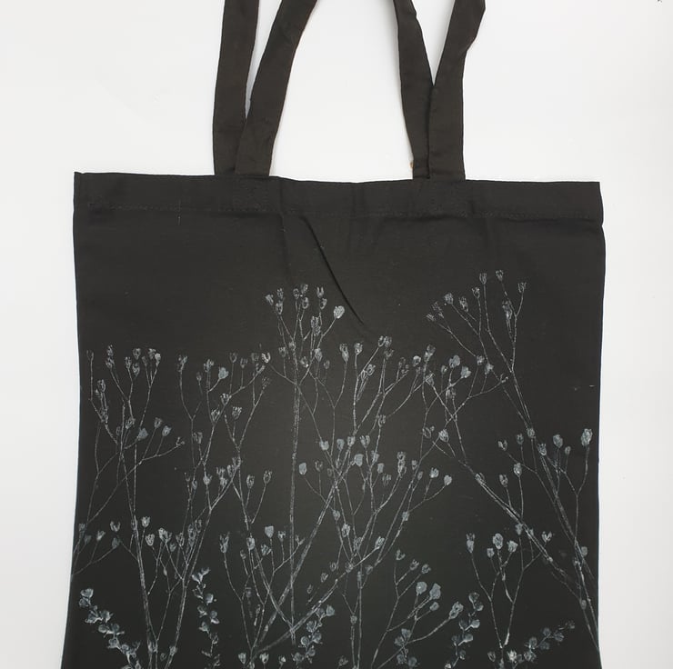 A handprinted botanical themed tote bag - a perfect handy shopper which can go over the shoulder.