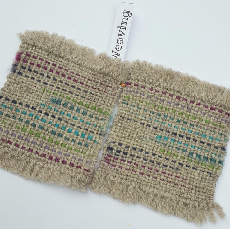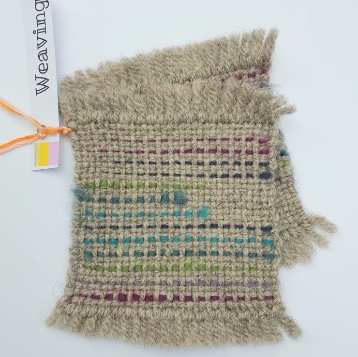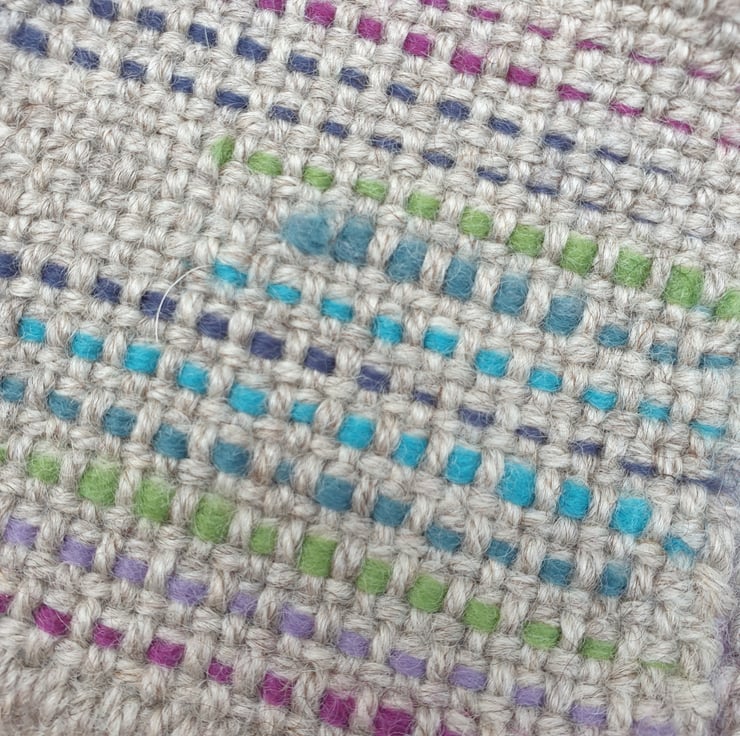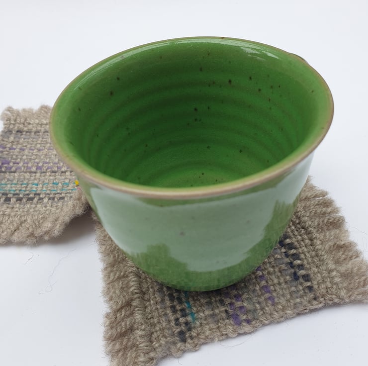 A pair of individually hand woven mug coasters. Woven with a warm grey tone Blue-faced Leicester wool featuring accent colour embellishment.