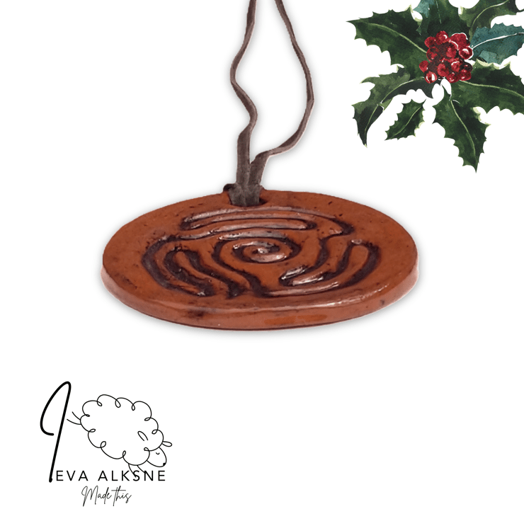 Hand-carved in clay and finished with oxide wash and glaze, this ceramic pendant is a charming piece of jewellery and a portable mini finger labyrinth.