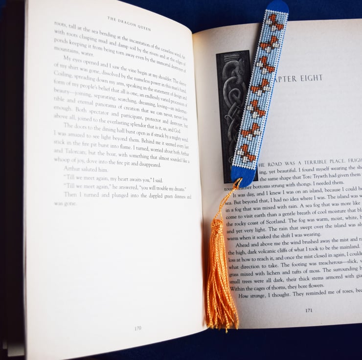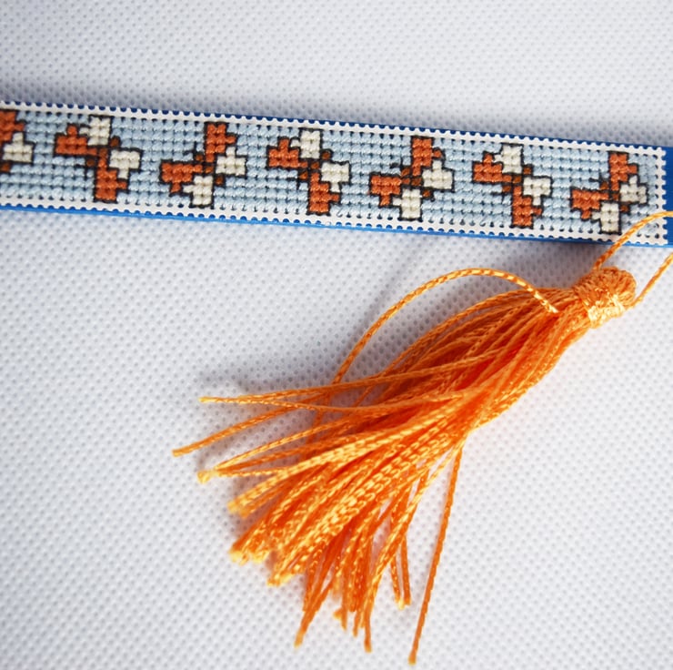 The bookmark measures approximately 15 cms long and 2 cms wide. It is approximately 27 cms long in total including the tassel.