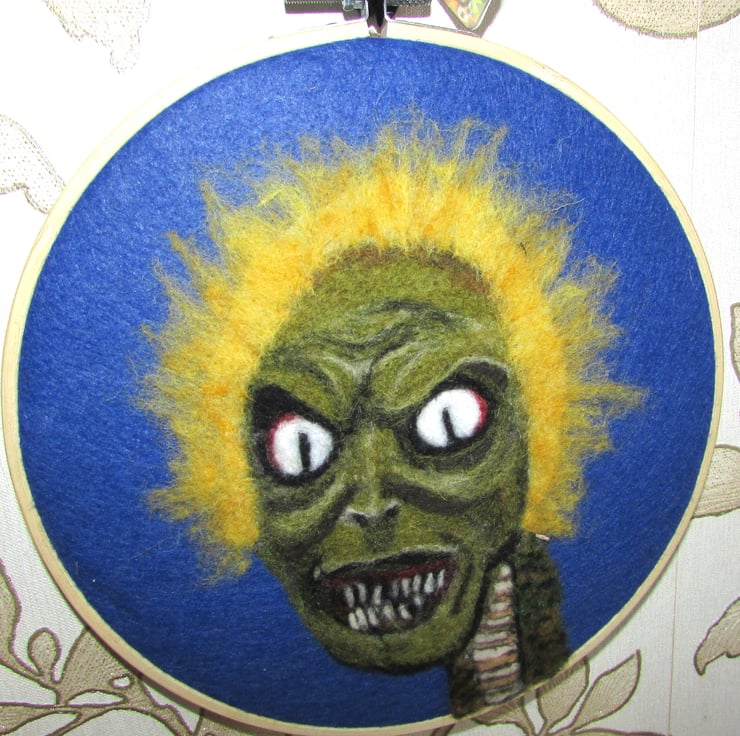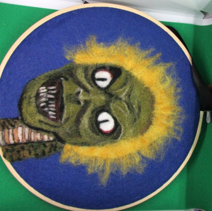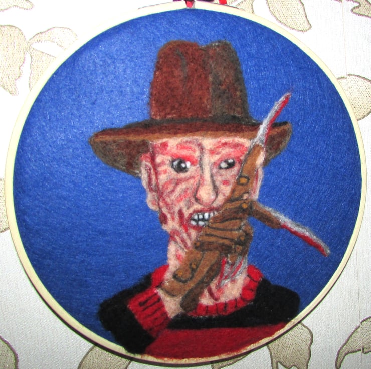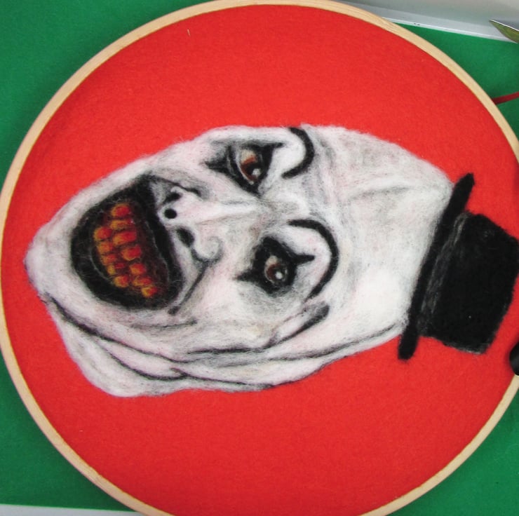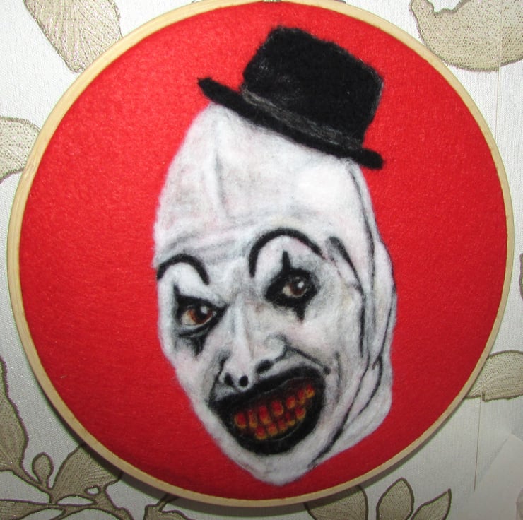 This felted horror character picture is perfect for Halloween decor, gothic-inspired spaces, or any horror art collection. Display it on your wall, prop it on a shelf, or gift it to a fellow horror lover for a one-of-a-kind spooky surprise
