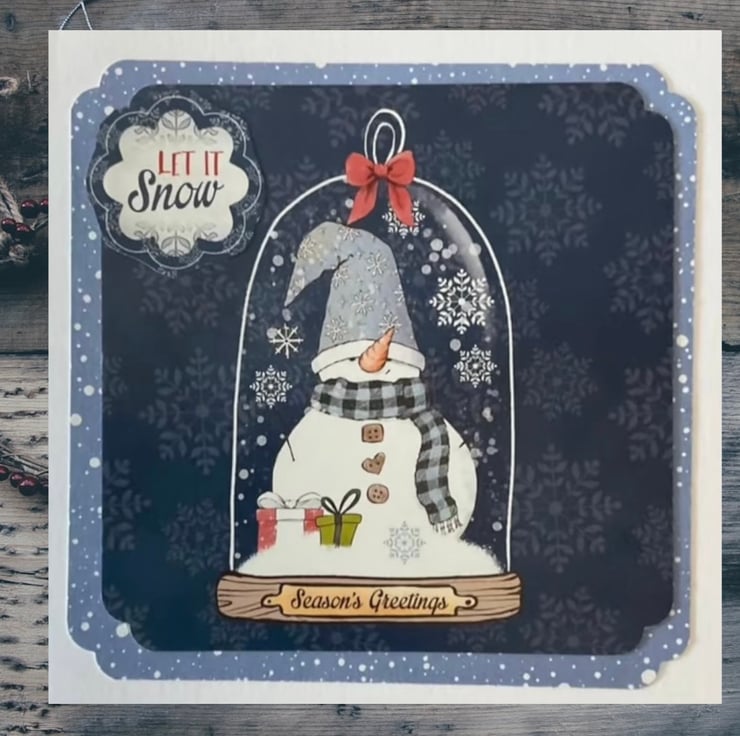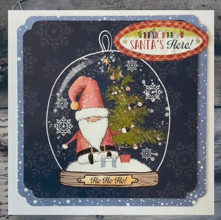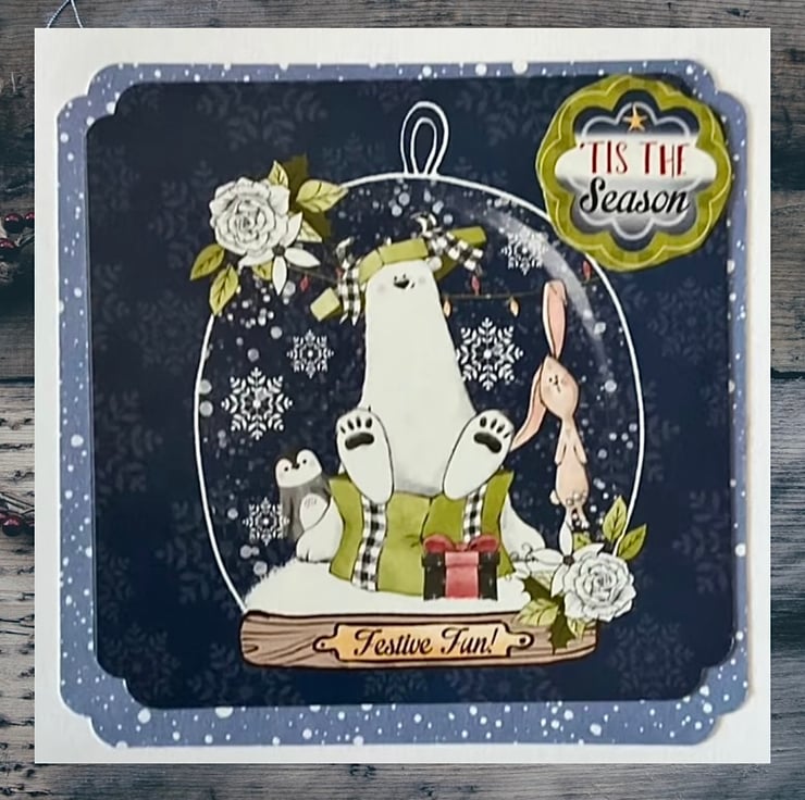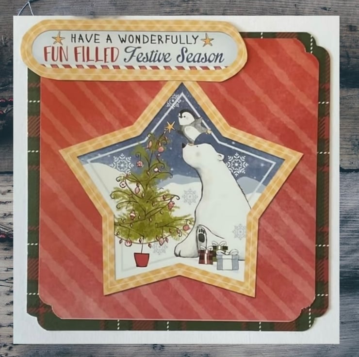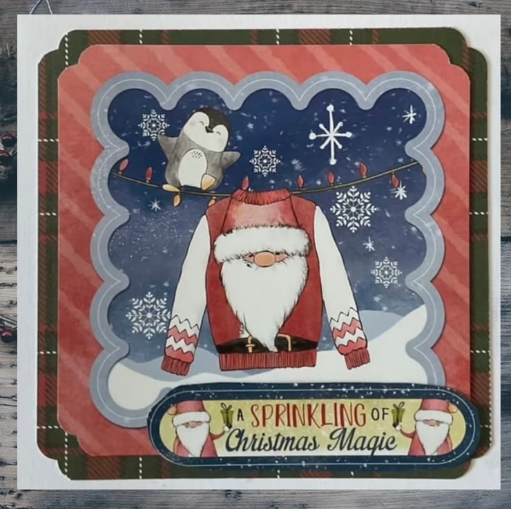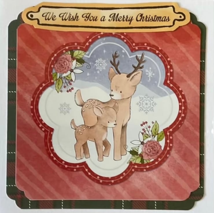 These sweet 5 x 5 inch cards have a white base layer which has been overlaid with festive card. A cute Christmas image has been added along with a fussy cut greeting.