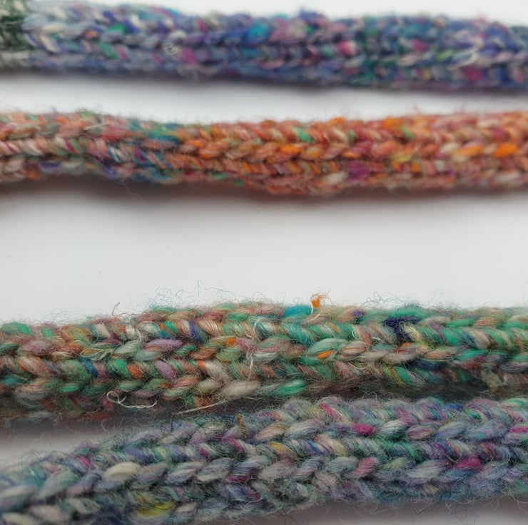 Knitted in a gorgeous yarn with a myriad of subtle shades and jewel like colours within the yarn.