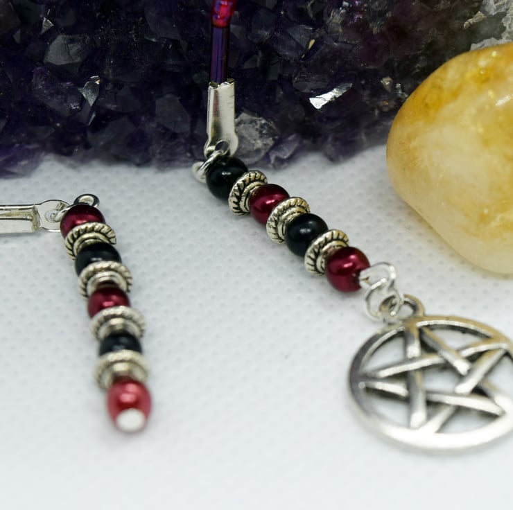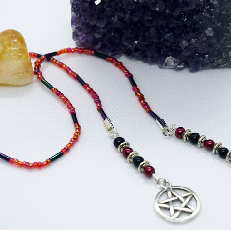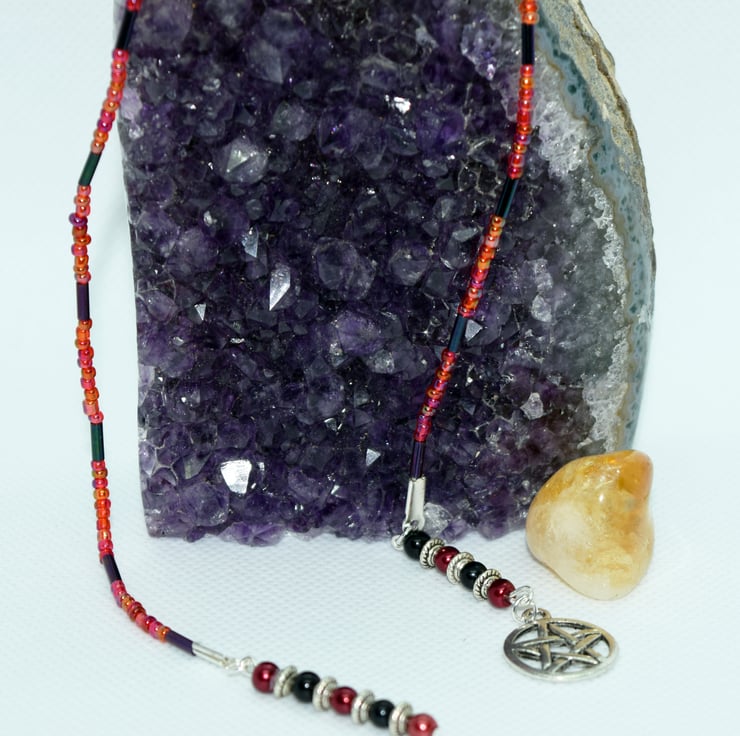 A beautiful and unique beaded bookmark with a Tibetan silver Wiccan Pentagram charm.