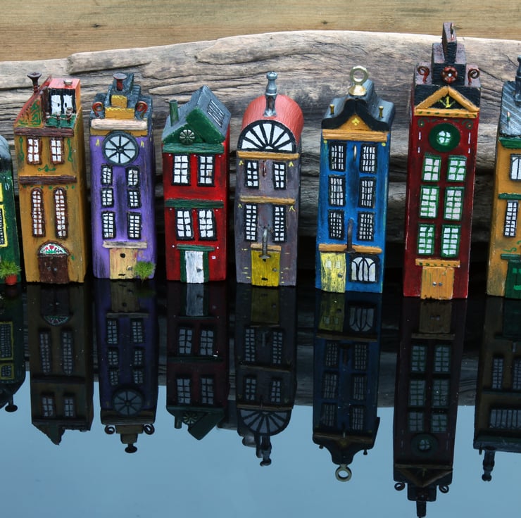 Capture the essence of Amsterdam today and embrace the wonky beauty of its remarkable buildings and through my Wonky Driftwood creations from reclaimed driftwood from Scotlands west coast