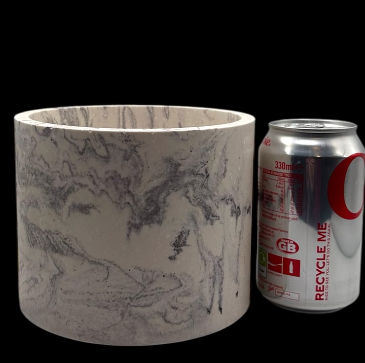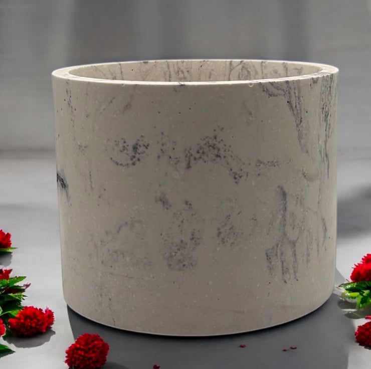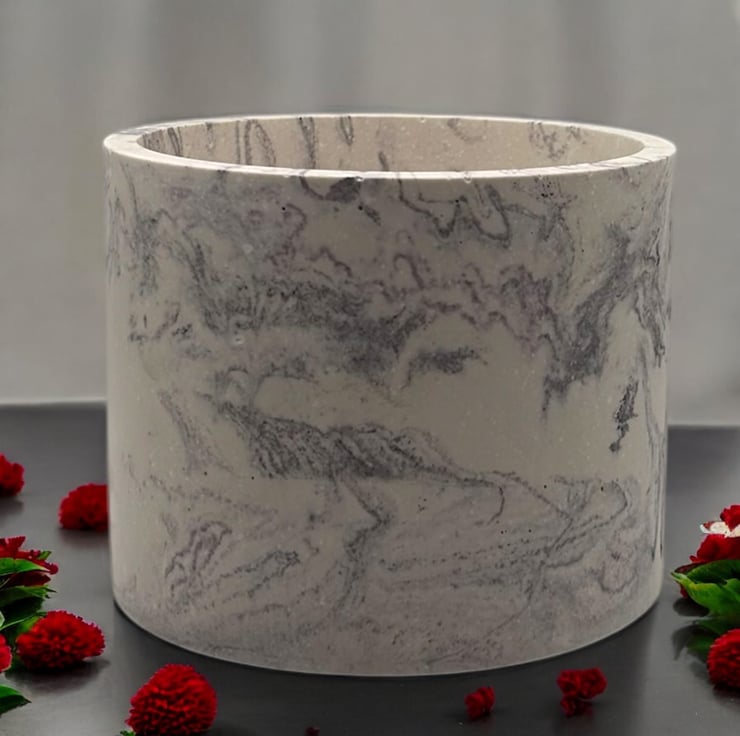 Large Round White and Grey Marble Effect Plant Pot (lpp20)